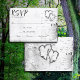 White birch bark wedding rsvp card with two hearts carved into the bark. Black and white them, with simple attendance, "will attend, will not attend", and a place to list entrées if needed.