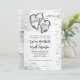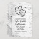White birch bark wedding invitation with two hearts design. Initials of the bride and groom, and year of wedding, can be added inside two carved hearts at the top of 5x7 inch cards. Realistic birch tree background is white with black lines. Modern and casual wording with modern fonts combines uppercase printed text with fun script for names. Matching items are available.