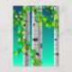 The crisp white bark of the birch tree with spring green leaves on a vibrant gradient teal-blue background. Digital illustration.