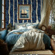 White Birch Tree Pattern Blue Wallpaper