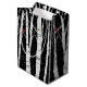 Red cardinals in white birch trees with full moon and snowflakes on a black background.
