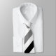 This white, black, and grey diagonally-striped tie is classic and will go well with nearly any suit.