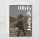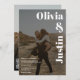 A modern, simple bold and elegant wedding invitation with bold oversize font in white on black , with a black overlay and 2 photos, add your QR code for rsvp , wedding details and more. All the text, names and background colours are customisable. A simple and minimalist invitation.
