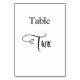 The table number is written with an elegant hand lettered style script. Black letters, white background. This table number is also available in rose gold.