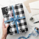 White & Black Christmas Buffalo Plaid Snowflakes Wrapping Paper