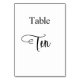 The table number is written with an elegant hand lettered style script. Black letters, white background. This table number is also available in rose gold.