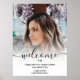 Welcome everyone to the graduation festivities with our stylish welcome sign! The classic black and white script spelling "Welcome" is complemented by a striking white ombre overlay, giving it a modern edge. Add a personal touch by including a memorable photo.