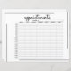 This professional and unique business appointment scheduling sheet is perfect for any modern business; salons, stores, and various businesses. . It's elegant and simple design features a black handwritten signature cursive script typography, broken border frame, business logo, and plain white background. It's modern, minimal, stylish, and trendy; the perfect design for your business stationery.