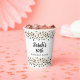 Elegant black and gold confetti glitter on a white 80th birthday party paper cup. Personalised with the name of the guest of honour and her age.