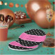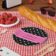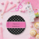 Black and white polka dot pattern. White polka dots on black with hot pink bridal shower paper plates.