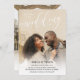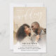 Simple and beautiful double sided two in one photo wedding invitation with your photo covering the wedding invite card. Join us for the wedding of is written at the top of the photo, with wedding in a beautiful white calligraphy script. On the other side, add another photo and additional wedding information your guests will need.