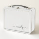 This is a standard metal lunchbox that appears to work just fine. We designed this box ourselves with an uploaded photo and custom text on the front and back. It looks absolutely beautiful except the front of the lunchbox is not centered like it shows in the photo. The print borders don't align with the inset flat part of the box where the preview photo online showed it perfectly centered in there. The back looks nice and centered though.