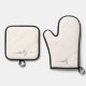 White Black Modern Script Monogram Name Oven Mitt & Pot Holder Set