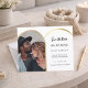 On front: Add your own vertical size photo. A faux gold photo arch frame. A classic white background, black text. Personalise and add your nams and the date.