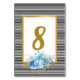 Custom white and gold table number with blue bouquet pretty elegant and customisable with STRIPE background