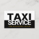 A white and black layered cover with the black piece forming the basis of a simple negative space design. Two intertwining caption remarks i.e. "TAXI" and "SERVICE" sit on these layers. ; You can change the captions to suit your own service needs. Near the base of the card lies the contact details in yellow.