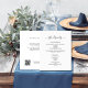 A modern, elegant wedding details/program/timeline. A white background. Personalise and add your names and wedding details. Black coloured letters.