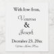 Elegant crisp white background with black text wedding reception favours. With Love From, Personalise Bride and Groom's First Names, Wedding Date. Add Wine Name at the bottom or delete. Designs by TamiraZDesigns.