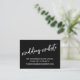 Keep your wedding guests in the loop with all your details with these modern, two-for-one wedding insert cards. Casual typography text overlays were designed using a modern handwritten font, in white. One side's header reads "wedding website" and the other, "save the date". Use the template fields to customise these enclosure cards with your personal information. The background is editable black; change it to any colour you like! // 100 // Designed by Melody Watson for Paper Muserie.