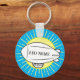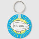 Cute cartoon style white blimp drawing. Bright yellow sun in the background. Custom keychains. Edit name on the balloon to customise it. Gift idea.