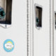 Cute cartoon style white blimp drawing. Bright yellow sun in the background. Custom magnets. Edit name on the balloon to customise it. Gift idea.