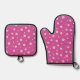 White Blossoms on Hot Pink Oven Mitt & Pot Holder Set