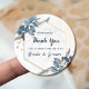 White Blue Floral Frame Thank You Wedding Favours Classic Round Sticker