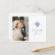 Chic and modern simplicity. This memorable "thank you" postcard features a couple photo, a lovely set of contemporary fonts and floral monogram in dusty blue, against a crisp white background at the front and a contrasting crisp white at the back.