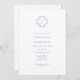 Chic with youthful elegance. This dusty blue and white flat wedding invitation card exudes a fresh, modern and youthful tone. The front features a contemporary set of fonts in dusty blue and elegant floral couple monogram, against a crisp white background. The back includes text area for RSVP prompt as well as QR code for couple's wedding website.