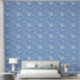 White blue floral tile pattern wallpaper