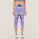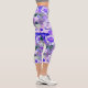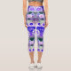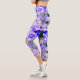 WHITE BLUE FLOWERS Peony Roses Japanese Floral Capri Leggings