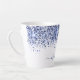 A stylish white background, decorated with dark blue faux glitter dust. Personalise and add your name written with a trendy hand lettered style script with swashes.