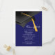 Start off your event right with our trendy & stylish white grad cap with with with a navy blue background graduation party Post Card invitation. Perfect graduation invitation for a high school graduation or college graduation. Just fill in your information add your photo and you're all set to go. Visit our shop at www.celebrateitgraduations.com for a large assortment of graduation invitations! graphics©delightful-doodles
