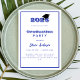 A modern and stylish invitation for a graduation party. For both him and her. White background, blue text and a frame. A black graduation cap.
