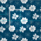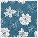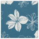 This is a hand-drawn white graphic floral pattern on a ocean blue background.
