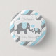 White, Blue & Grey Stripe Elephant Baby Boy Shower 3 Cm Round Badge
