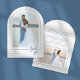 An elegant and modern arch-shaped wedding thank you card that features a trendy handwritten style "thank you" text and sleek borders around your photos. Personalise the template with your initials, wedding date, message, and photos. Shown in a blue and white palette, but all text, elements, and background colours are editable, so that you can create a custom card that matches your photo perfectly. © Kimbellished, LLC