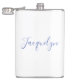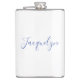 White Blue Plain Elegant Modern Calligraphy Name Hip Flask