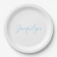 White Blue Plain Elegant Modern Calligraphy Name Paper Plate