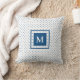 White Blue Polka Dot Pattern with Modern Monogram Cushion
