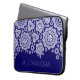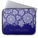 White & Blue Retro Ornate Circles-Monogram Laptop Sleeve