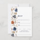 This French-Country-Bohemian-inspired wedding invitation RSVP has beautifully handpainted floral watercolors. It is an elegant yet simple invitation that is printed with a navy blue font. The card back is a solid white with the wedding couples' names. Easily edit the template to your bride and groom's names and wedding details. White Blue Rust French Country Floral Wedding RSVP. Navy Blue colour is Hex #2B324B.