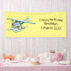 White blue seaplane illustration banner