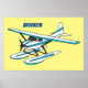White blue seaplane illustration poster