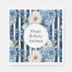 White Blue Stripes Floral Birthday Napkin