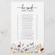 This stylish & elegant bridal shower 'he said, she said' game features gorgeous hand-painted watercolor wildflowers arranged as a lovely frame and elegant calligraphy script on a white background. The back includes a lovely coordinating pattern. Find matching items in the Boho Wildflower Bridal Shower Collection.
