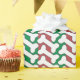 White bones on red and green stripes background. Cartoon style pattern. Custom gift wrapping paper rolls for Christmas. Gift wrap idea for dog lovers and their dogs.