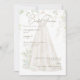 Wedding Dress Bridal Shower Invitation. Elegant. White background. Botanical. Bride. Foliage.