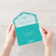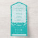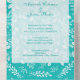 White Botanicals on Turquoise All In One Invitation