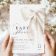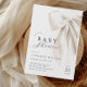 White Bow Baby Shower Invitation. This elegant invitation features a charming blush pink bow and romantic handwritten script, perfect for a whimsical baby shower. The chic ribbon and preppy design add a touch of sophistication, while the editable template allows for easy customisation. Create a beautiful and memorable invitation for your special event.